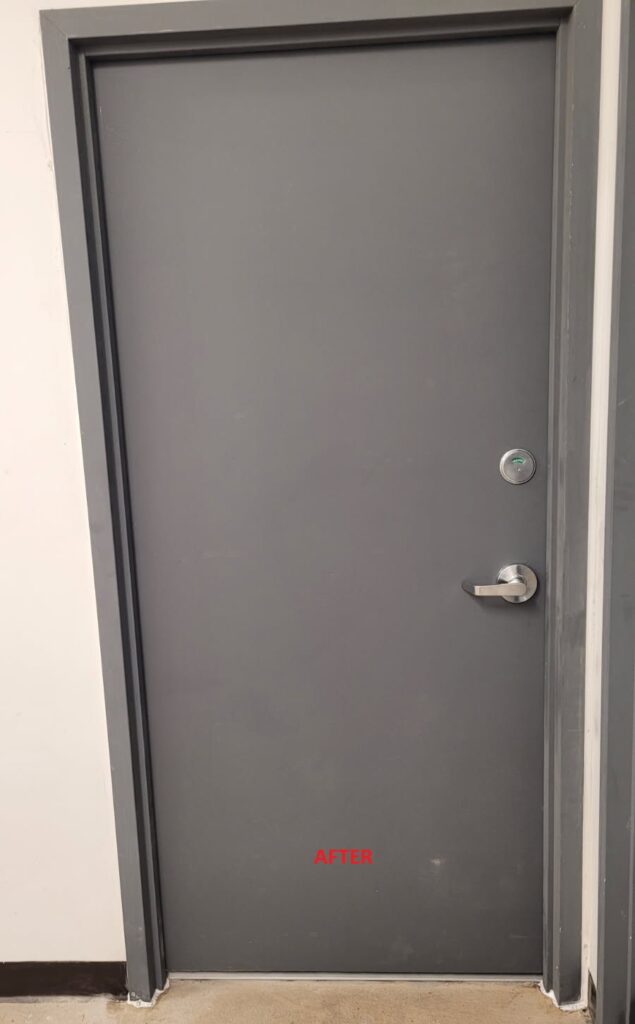 Pictured above is a multi-door replacement that our team completed. This included common area bathrooms and the pool pump room in a multi-family building. The frames had some rust and all of the doors were showing age.